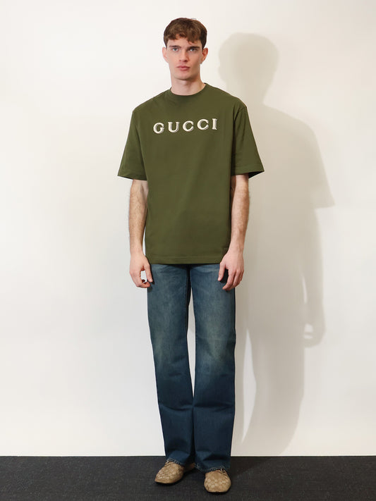 NewVendor:GUCCICotton T-shirt with Gucci embroidery on the front