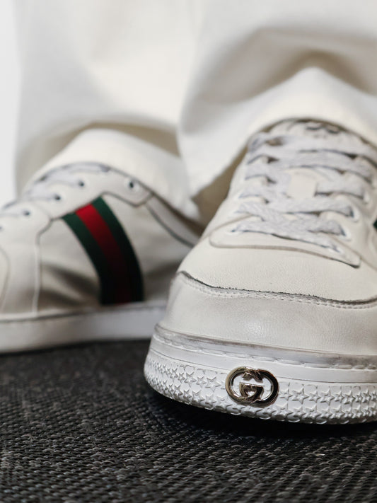 NewVendor:GUCCILeather sneakers with Web detail on the side