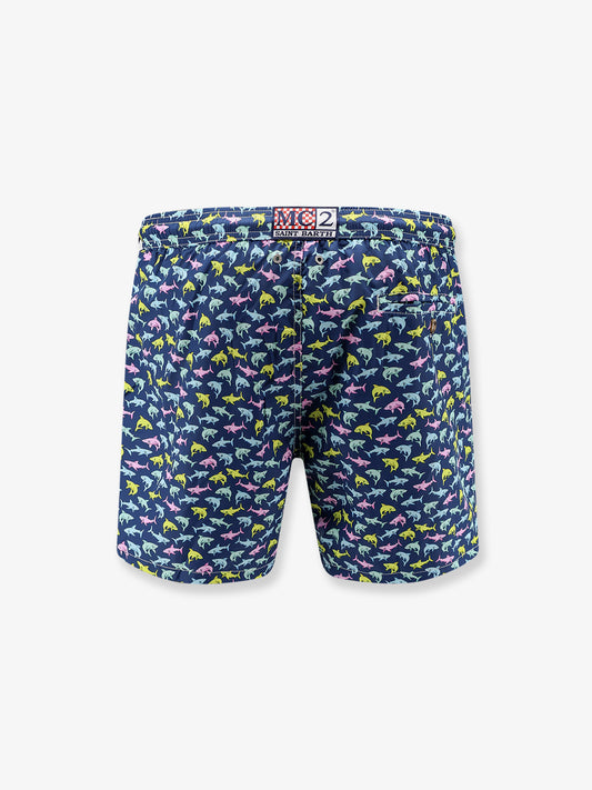 NewVendor:MC2 SAINT BARTHNylon swim shorts with Shark Trouble print
