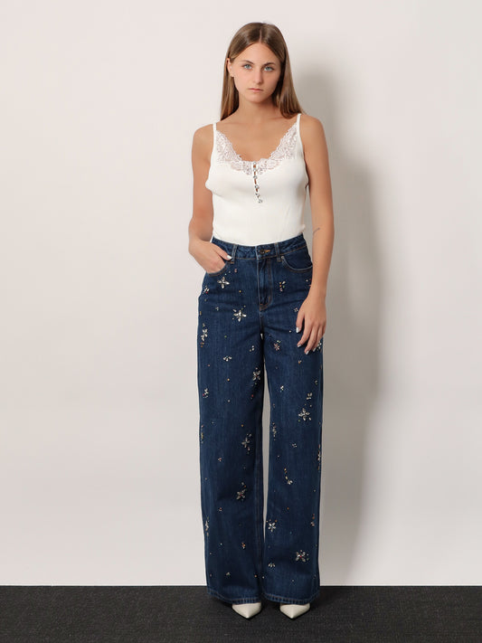 NewVendor:SELF PORTRAITDenim jumpsuit with rhinestones