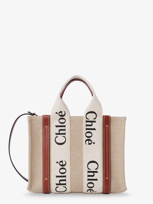 NewVendor:CHLOE'Woody linen and leather Tote Bag