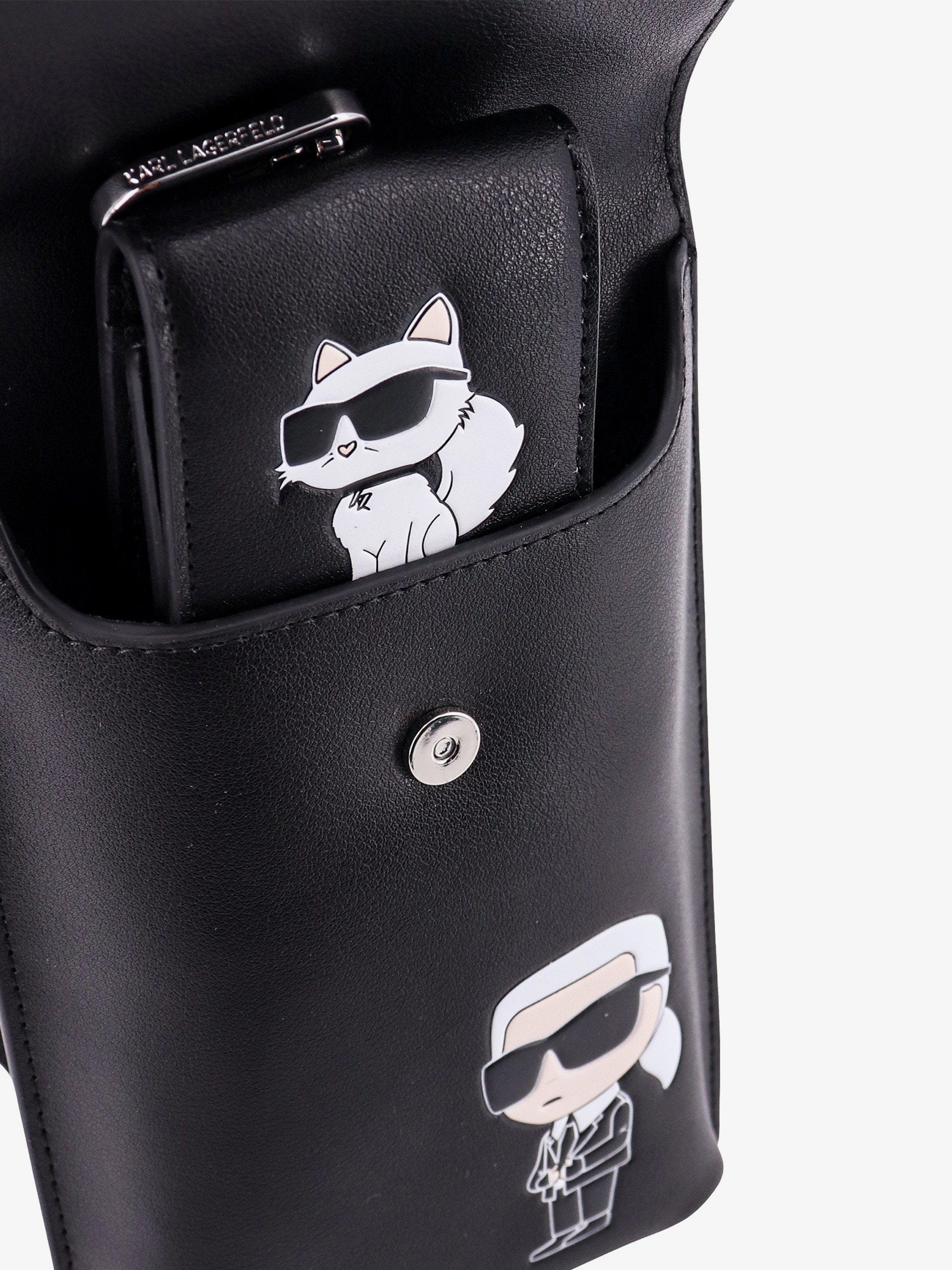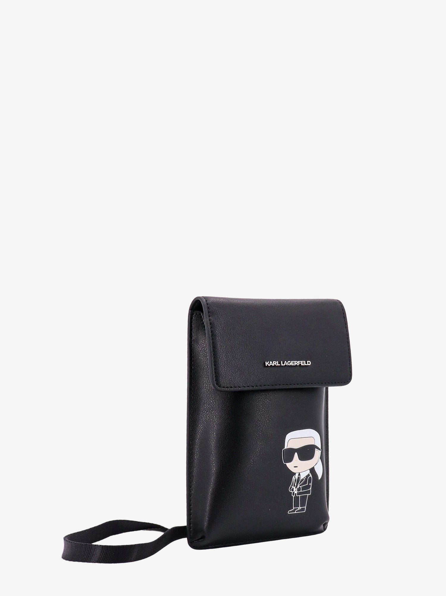 SKU: 230W3217_A999 - Closure with flap and magnetic button frontal logo karlito detail on the front leather purse with iconic detail and metal hook 100% leather