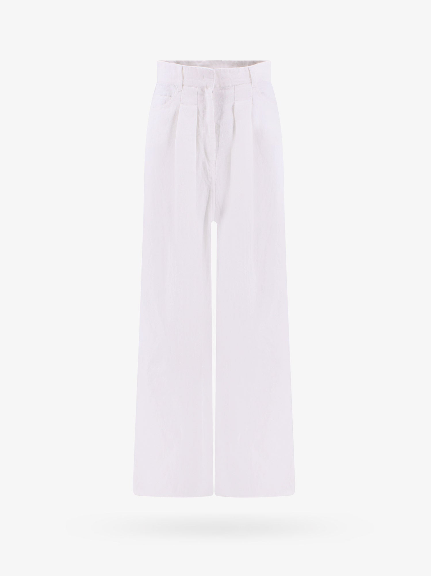 SKU: 23PK1P00231701_WHITE - Closure with zip and hook five pockets wide leg made in italy 100% linen