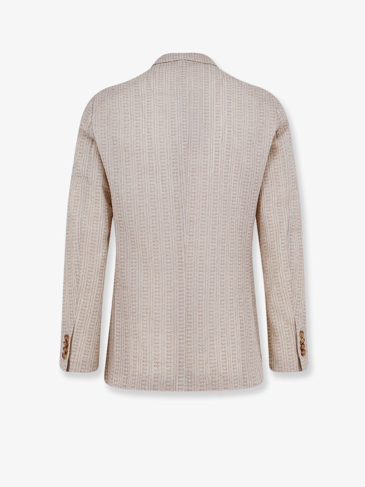 - Double-breasted with buttons