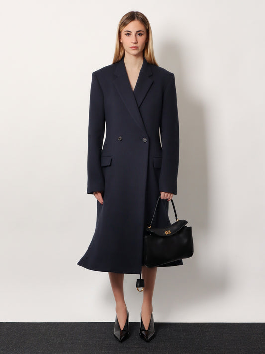 Vendor:BALENCIAGAGodet Midi double-breasted wool coat