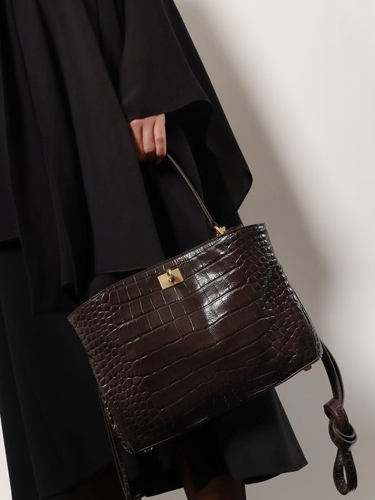 Vendor:BALENCIAGACarry All Bel Air leather shoulder bag with croco effect