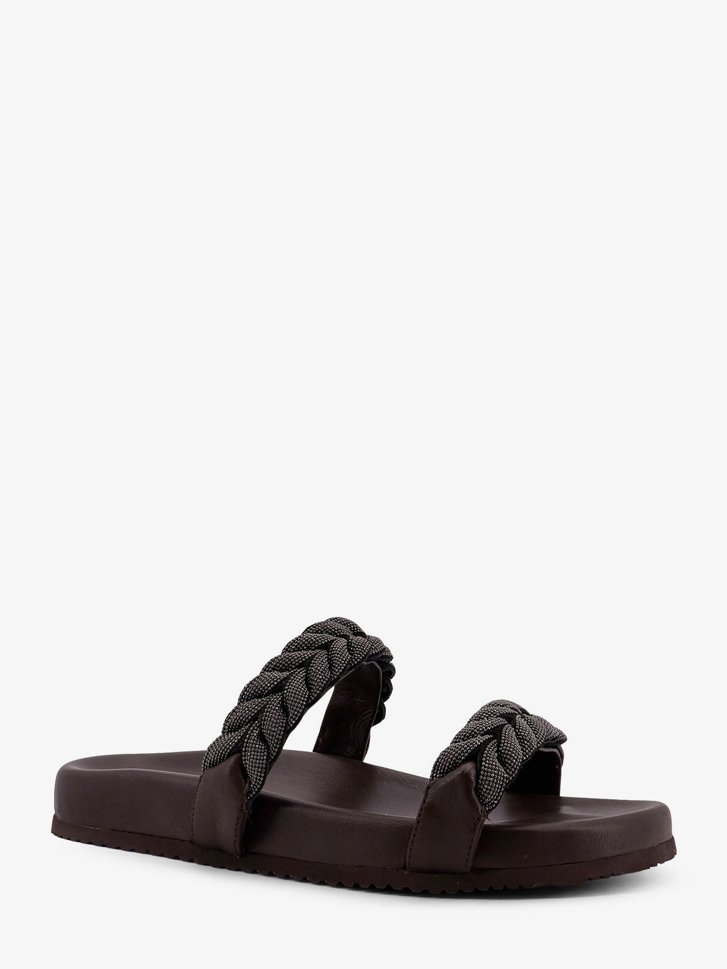 Leather sandals with woven Monili detail