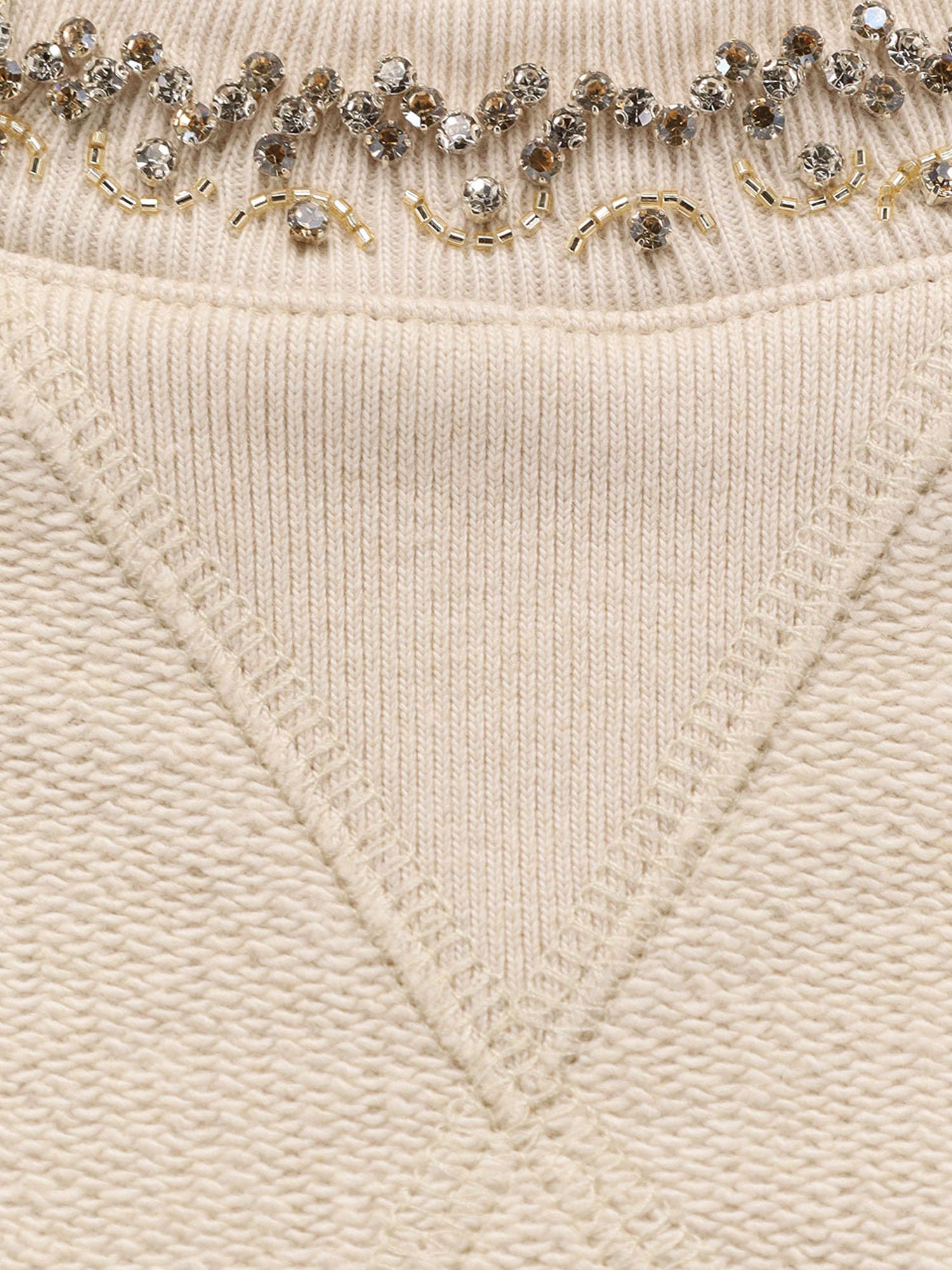 - Ribbed crew-neck with jewel detail