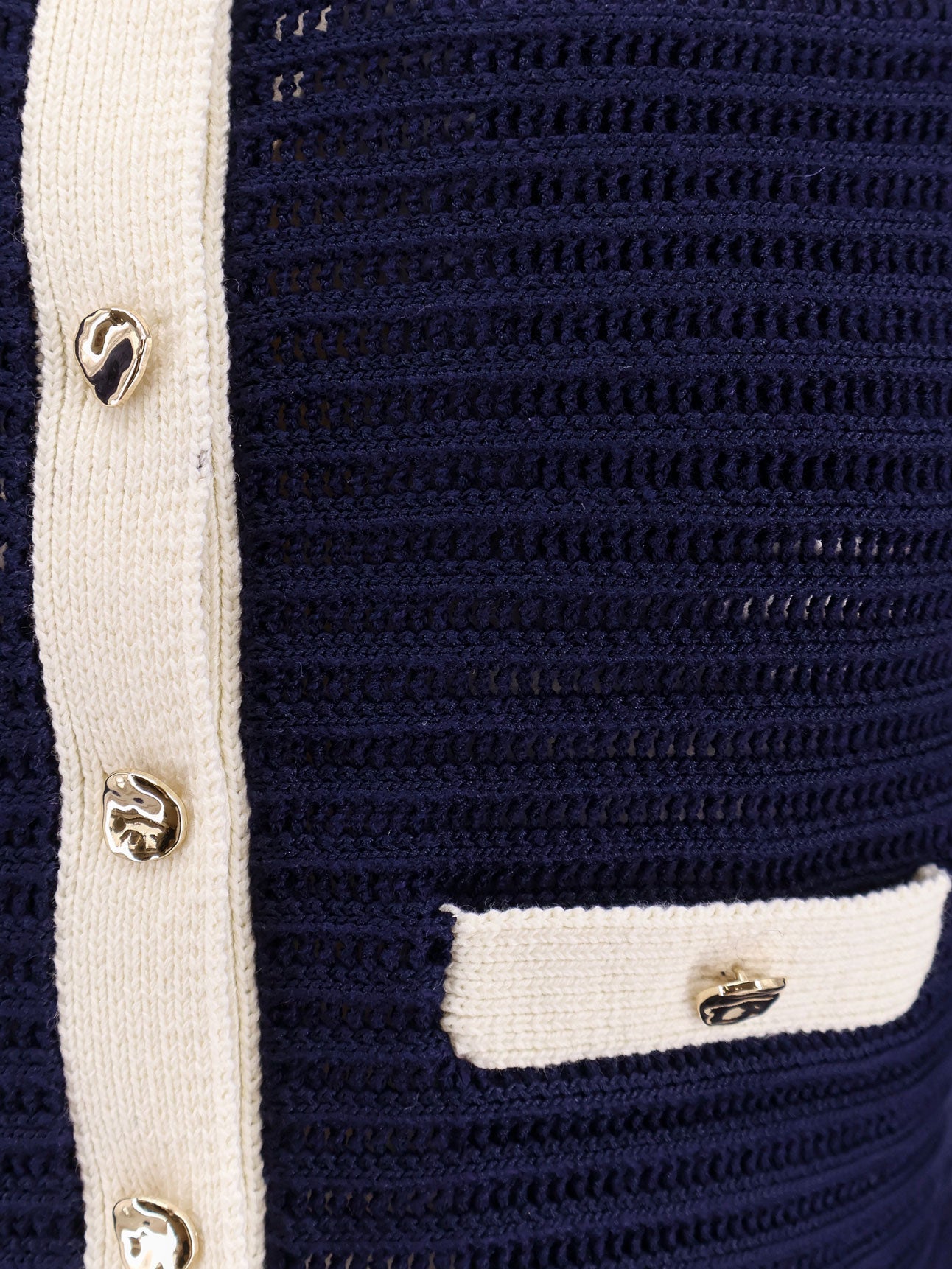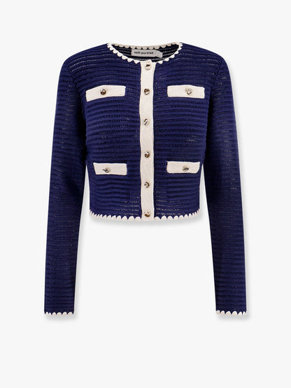 SKU: PF24131JBL_NAVY - Crew-neck with embroidery long sleeve with contrasting embroidery closure with metal buttons four pockets with button and contrasting profile on the front 45% cotton 41% viscose 10% polyamide 4% cashmere