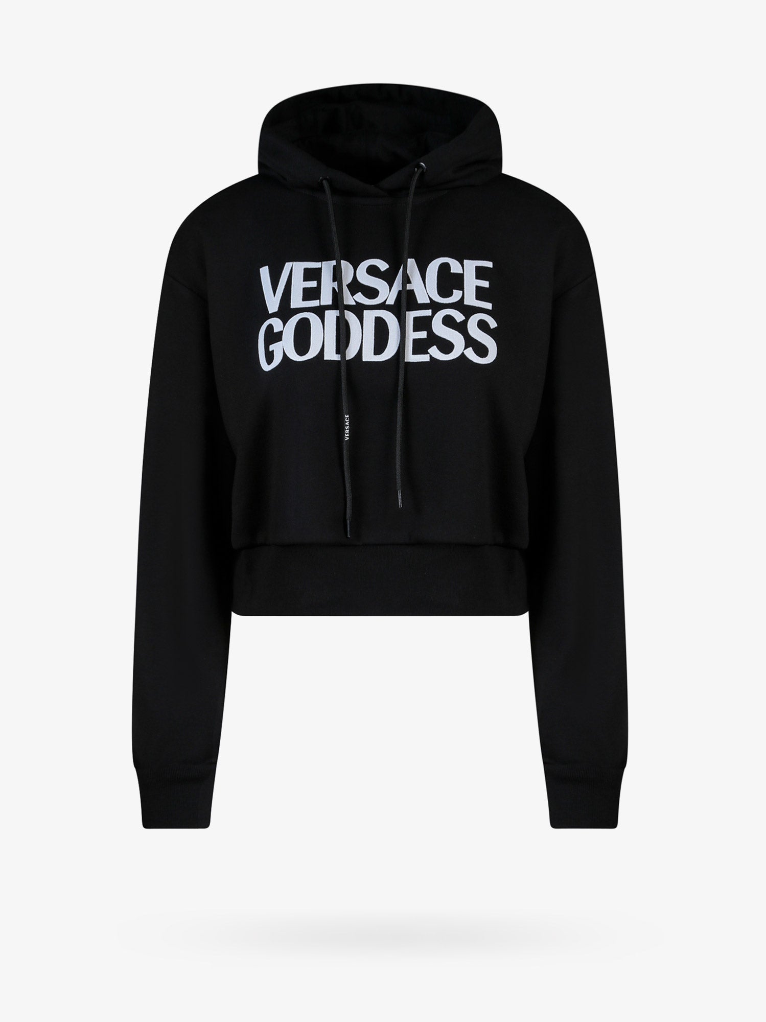 SKU: 10090601A06603_1B000 - Hood with adjustable drawstring versace goddess patch ribbed profiles made in italy 100% cotton