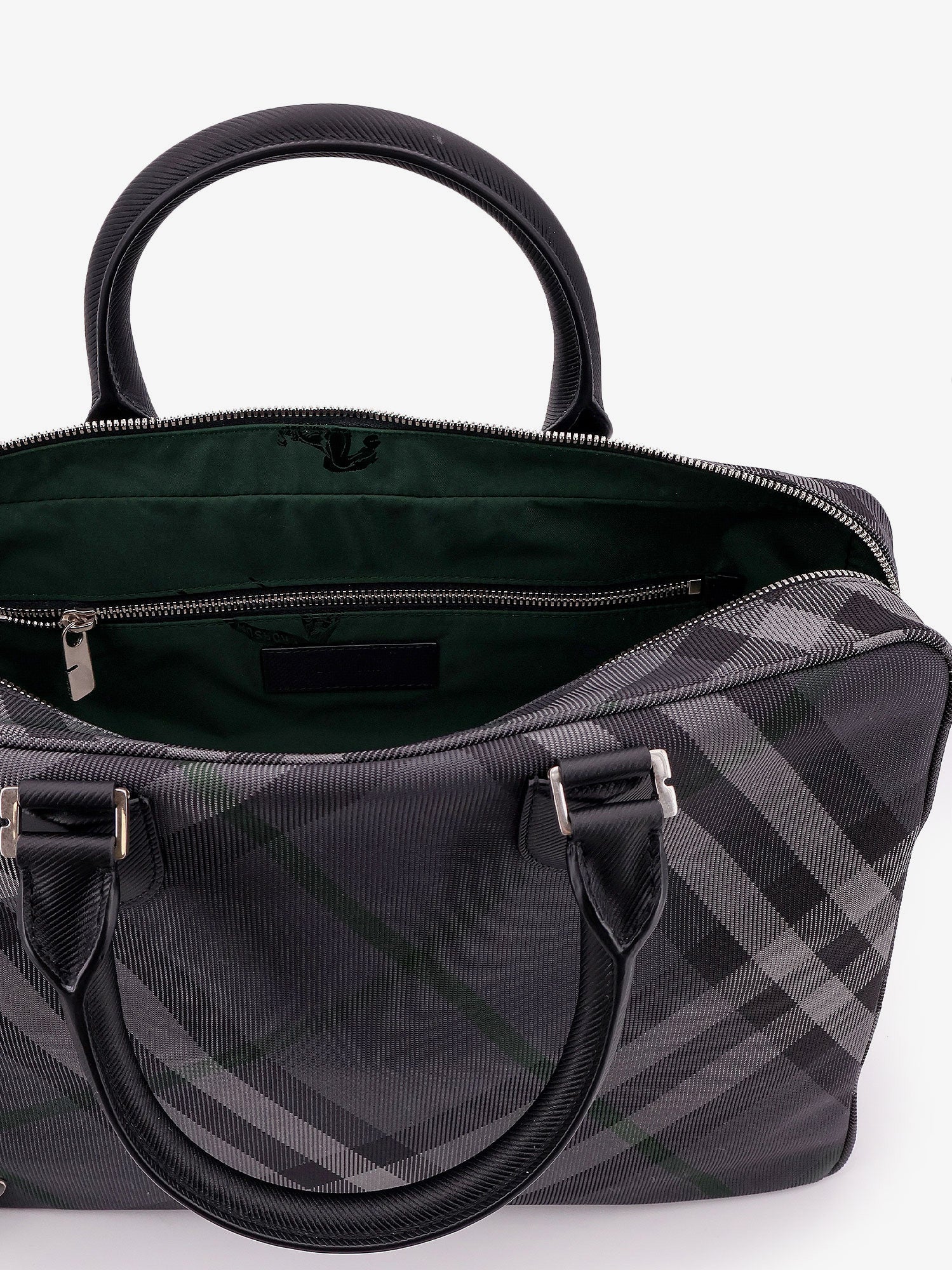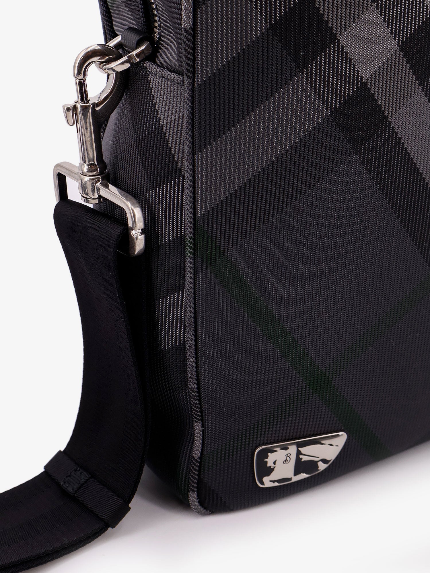 Nylon check briefcase with equestrian knight design lining