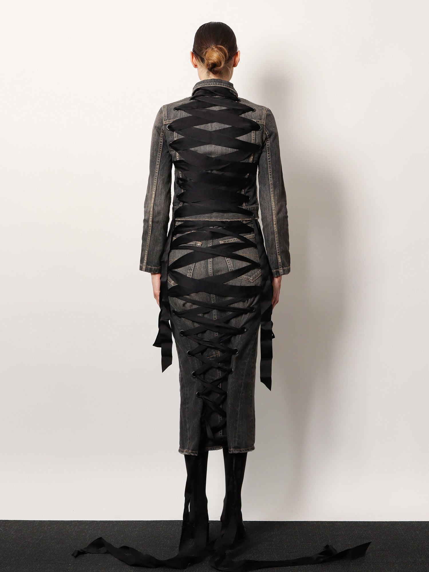 Denim skirt with laces interwining
