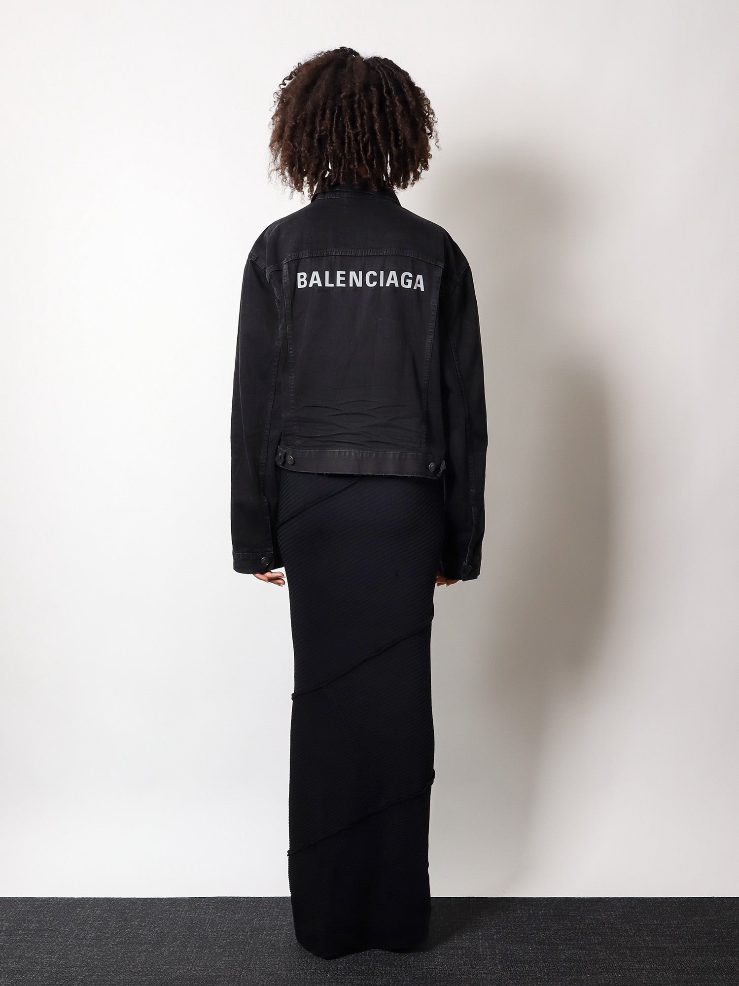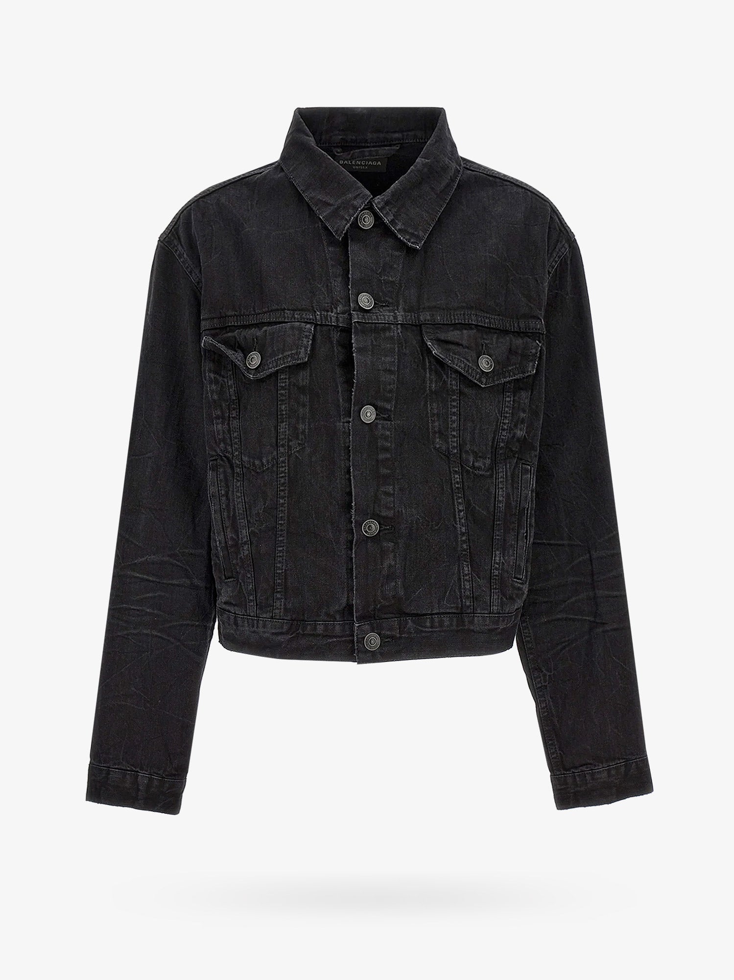 SKU: 790869TQW54_1071 - Closure with metal buttons balenciaga print on the back destroyed effect unisex 100% cotton