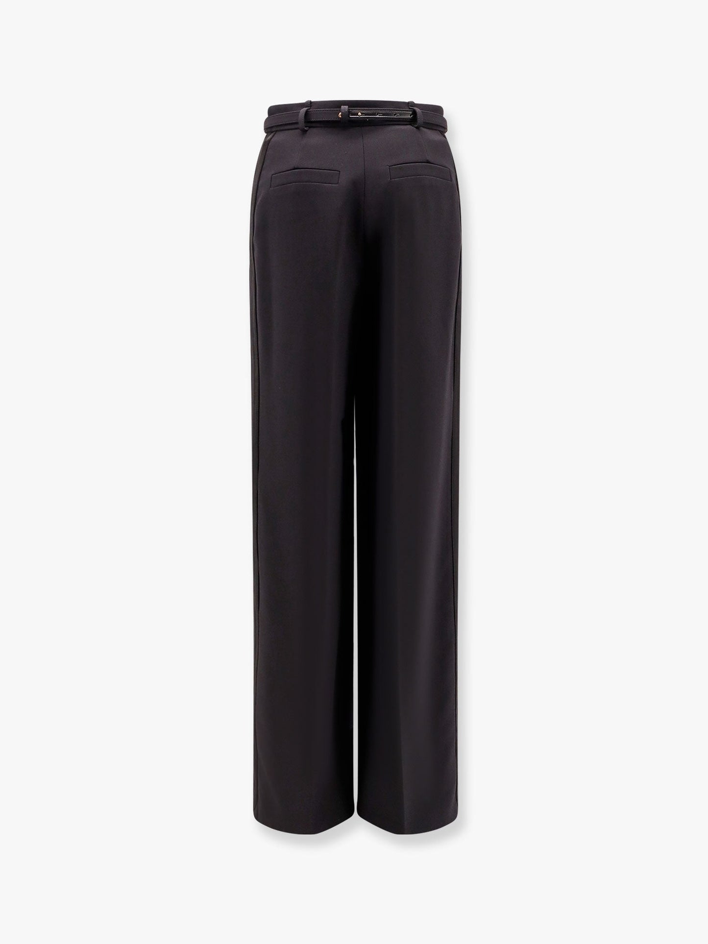 SKU: PA08751E2_110 - High waist with zip and metal hook lateral satin bands flared bottom leg made in italy 95% polyester 5% elastane