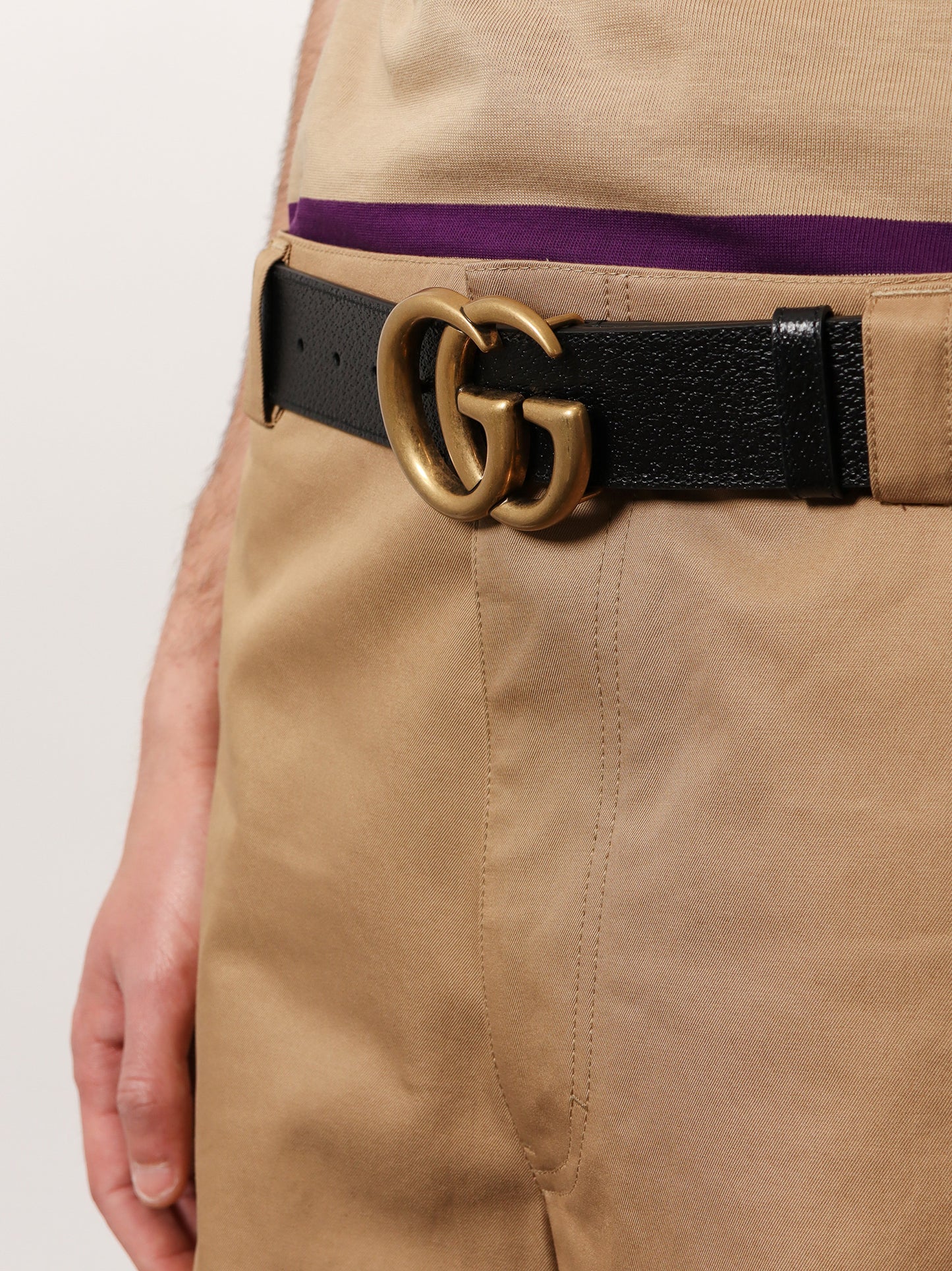 SKU: 406831DJ20T_1000 - Textured leather double g buckle leather loop made in italy leather