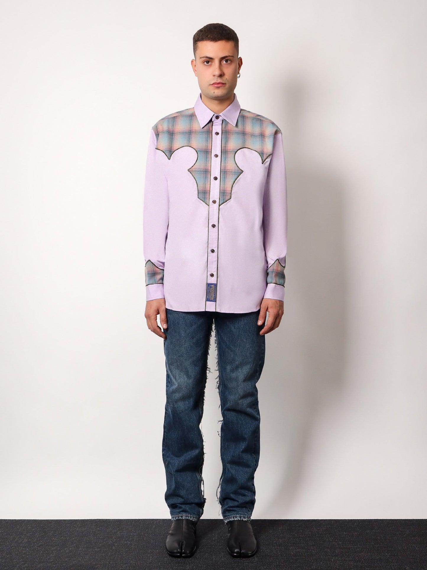 Cotton shirt with insert with madras motif