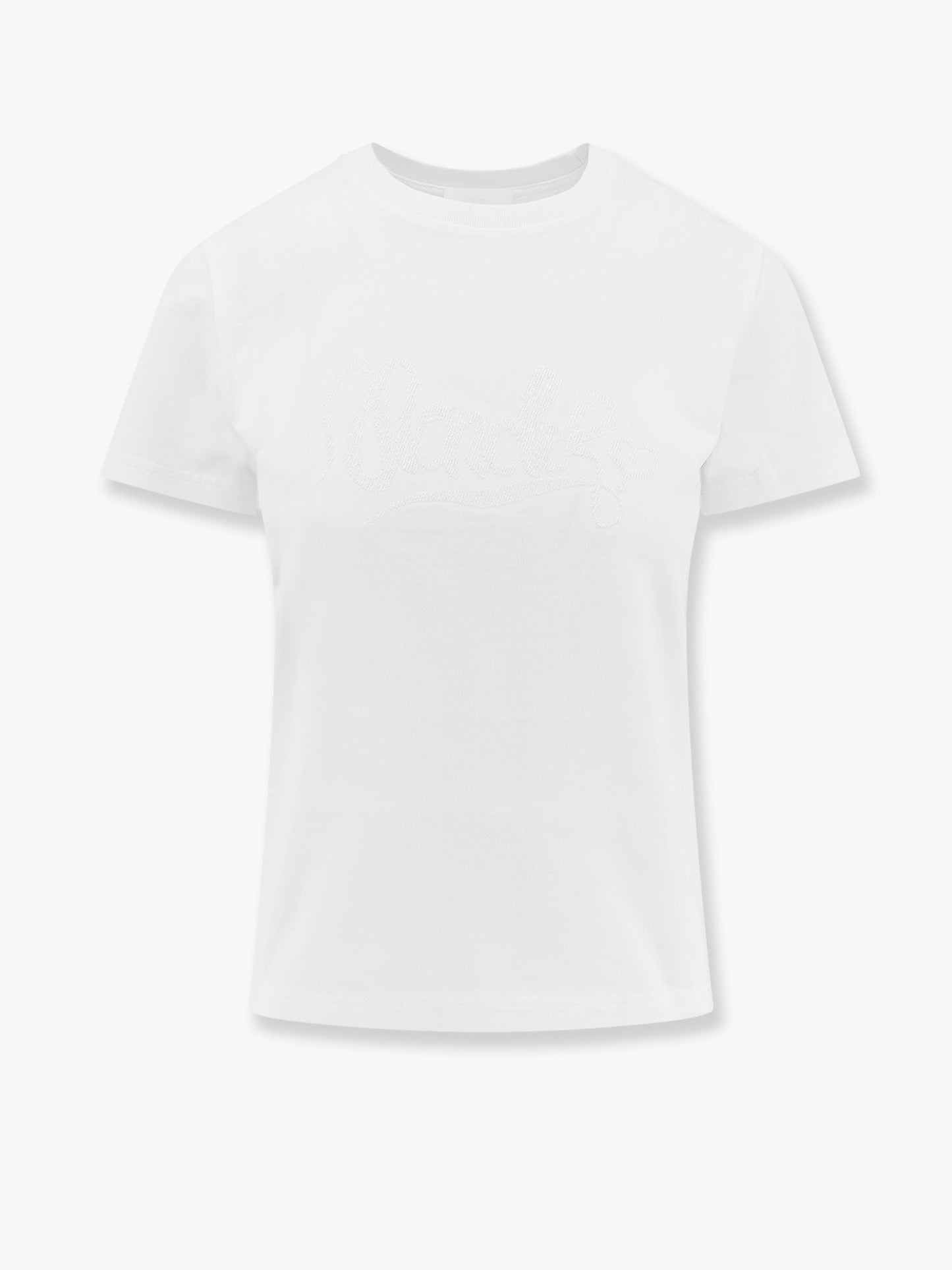 SKU: 0938C0001589AUG_00A - Ribbed crew-neck short sleeve moncler print with lurex effect on the front logo patch on the left sleeve 100%