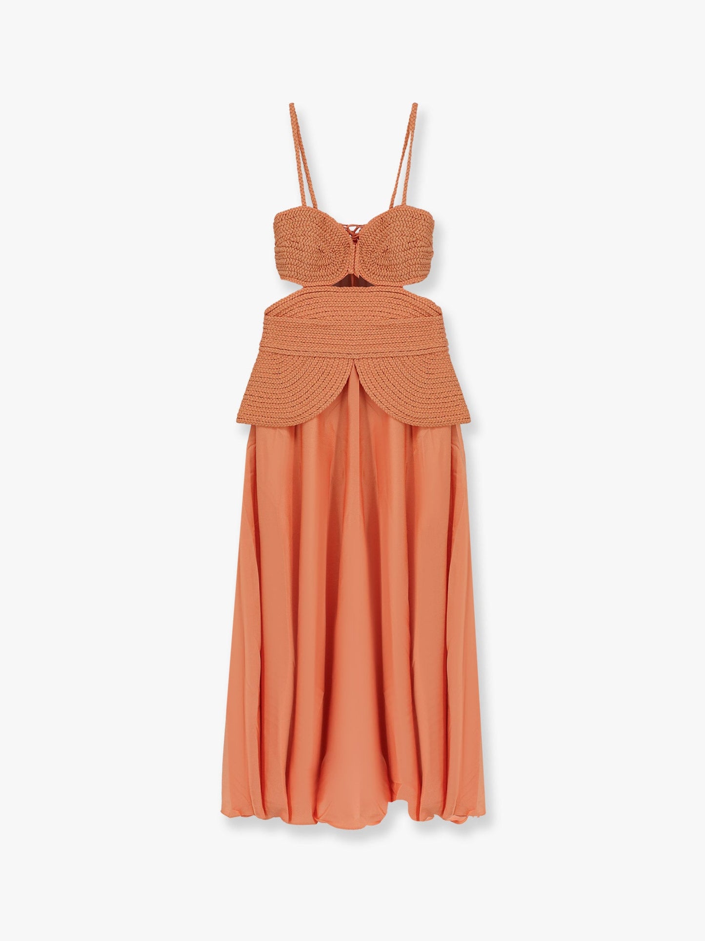 Satin sunset midi dress with braided corset