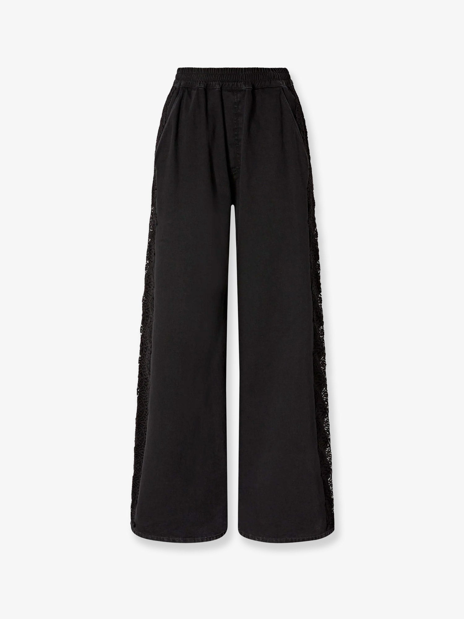 Denim trousers with lace detail on the side