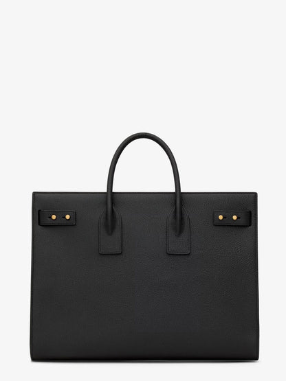 • Two leather handles and a removable and adjustable leather shoulder strap