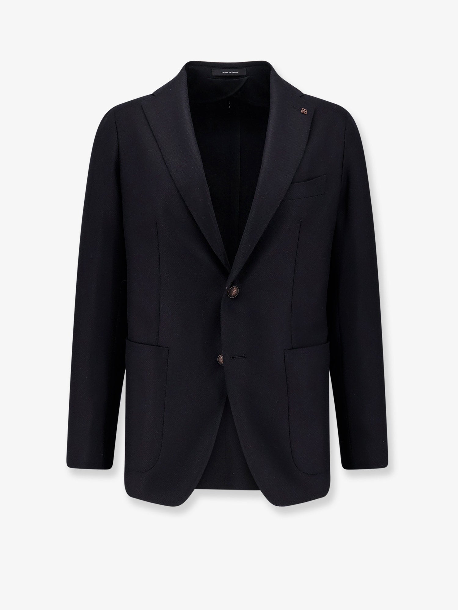 - Button closure and classic peak lapel