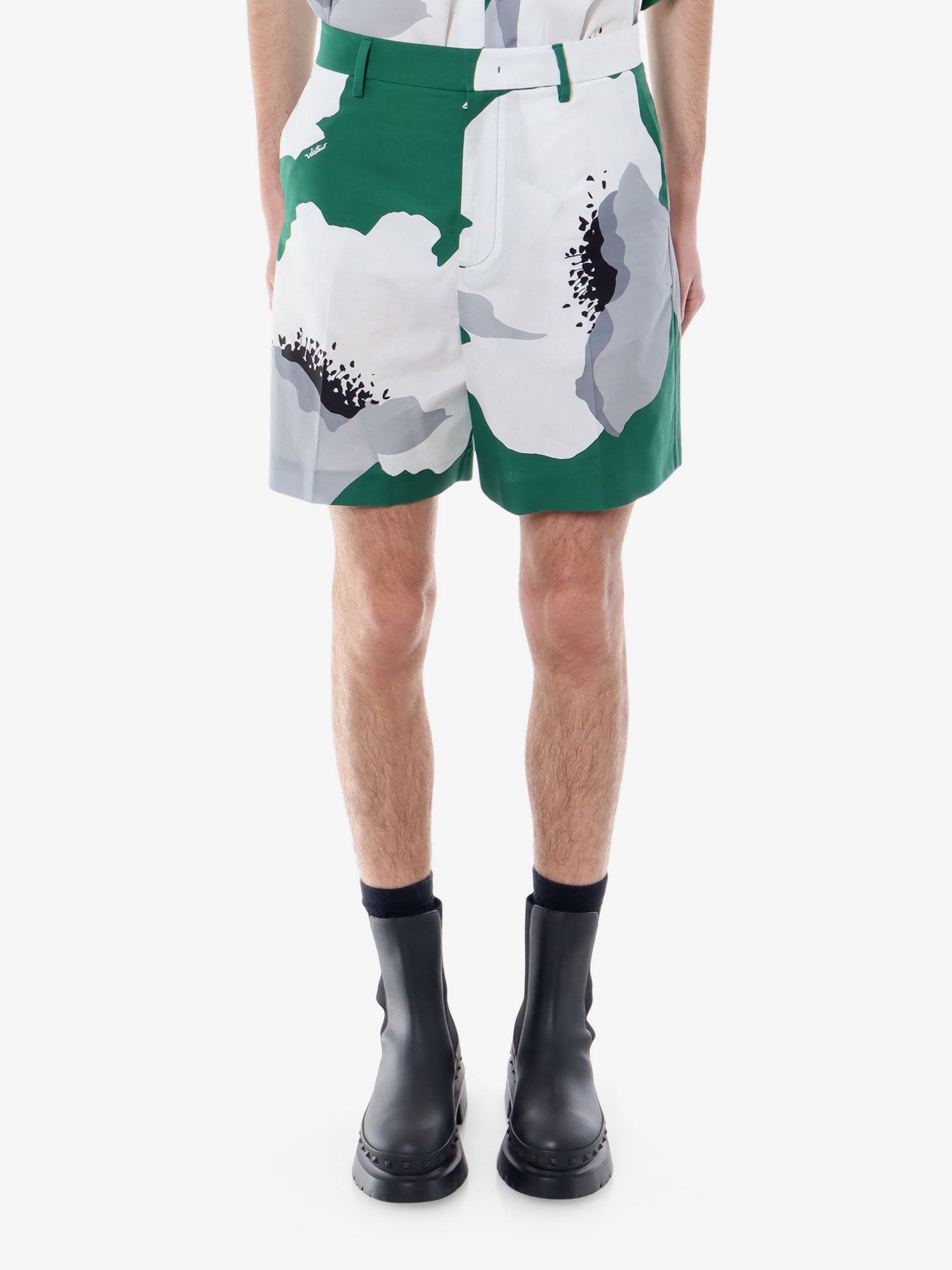 Cotton bermuda shorts with valentino flower portrait print